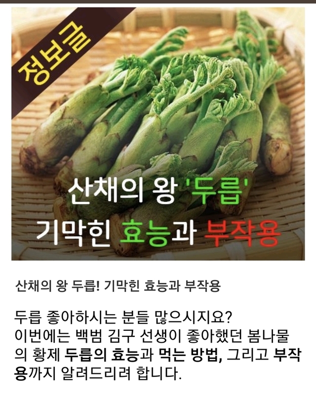 이런 특별한 성분들 덕분에 두릅은 단순한 나물을 넘어 건강식품으로도 많은 사랑을 받고 있어요. Daum 카페에서 두릅의 놀라운 효능 7가지를 참고해 볼 수도 있답니다.
